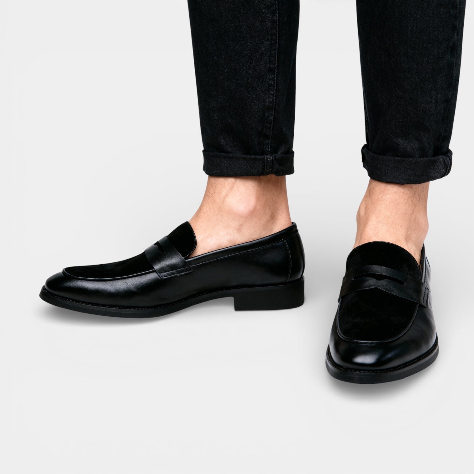 Designed for effortless sophistication, these men’s vegan leather penny loafers deliver a timeless silhouette with a clean, contemporary edge. Crafted from smooth, leather-look vegan material with a soft matte sheen, they offer a polished appearance while remaining lightweight and comfortable. The classic penny strap detail and low-profile sole make them ideal for both smart-casual and dress occasions, pairing seamlessly with tailored trousers or relaxed suiting.