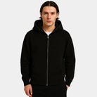 This men’s hoodie delivers everyday comfort with a clean, modern look. The full-length front zipper extends all the way to the hood, offering adjustable coverage and easy layering. Inside, the brushed lining provides soft, insulating warmth, while the uniform knit exterior keeps the silhouette refined. Designed with a relaxed fit, this hoodie moves effortlessly through daily wear, complemented by a drawcord hood, front kangaroo pockets, and ribbed cuffs and hem for a secure finish. Perfect for casual outfits, workouts, or weekend layering.