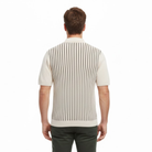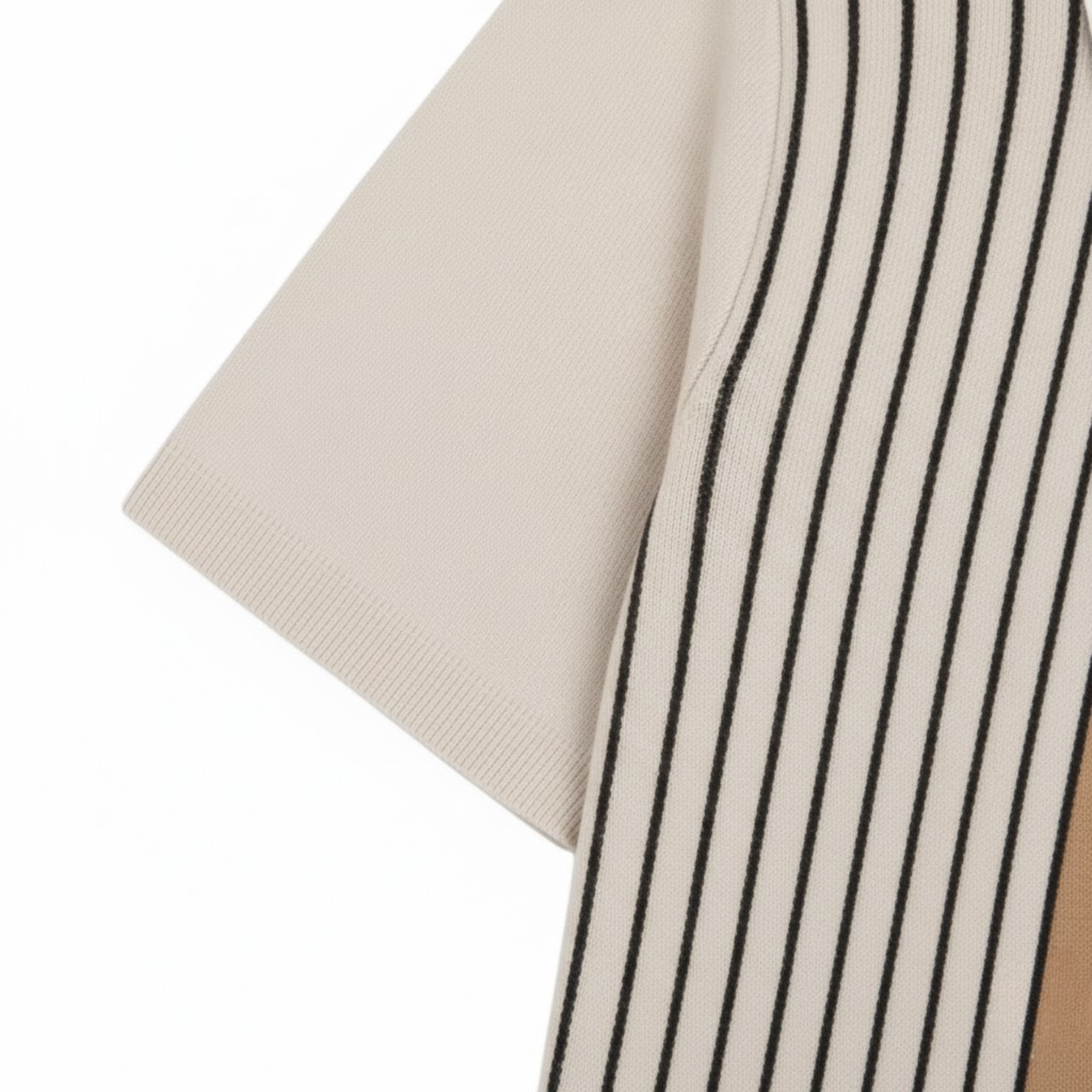 Men's Knit Polo Shirt Short Sleeve Striped Button Down Breathable Retro Casual Top