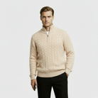 Blending classic knit detailing with a versatile modern silhouette, this men’s quarter-zip cable sweater delivers warmth and structure in one refined layer. The raised cable pattern adds depth and visual interest, while the ribbed stand collar and quarter-zip neckline allow easy adjustment for changing temperatures. Soft knit construction keeps the fit comfortable, and ribbed cuffs and hem help maintain a clean shape throughout the day. Whether worn on its own or layered over a tee, it brings effortless polish to cool-weather outfits.
