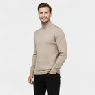 A refined staple for cool-weather layering, this men’s ribbed turtleneck sweater is crafted from a soft cotton-blend knit with gentle stretch for lasting comfort. The ribbed texture enhances structure while providing a sleek, form-fitting silhouette. Designed with a fold-over turtleneck collar, ribbed cuffs, and hem, it delivers both warmth and timeless style. The slim fit through the torso creates a clean, contemporary look that pairs effortlessly with tailored trousers, denim, or outerwear.